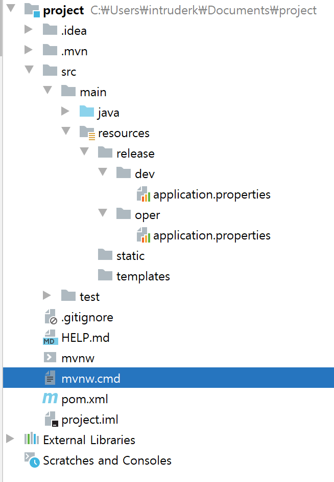 여기서 제가 dev 와 oper 은 제가 원하는데로 한 것이니 나중에 직접 프로젝트에 적용하고 싶은 이름을 작성하면됩니다.